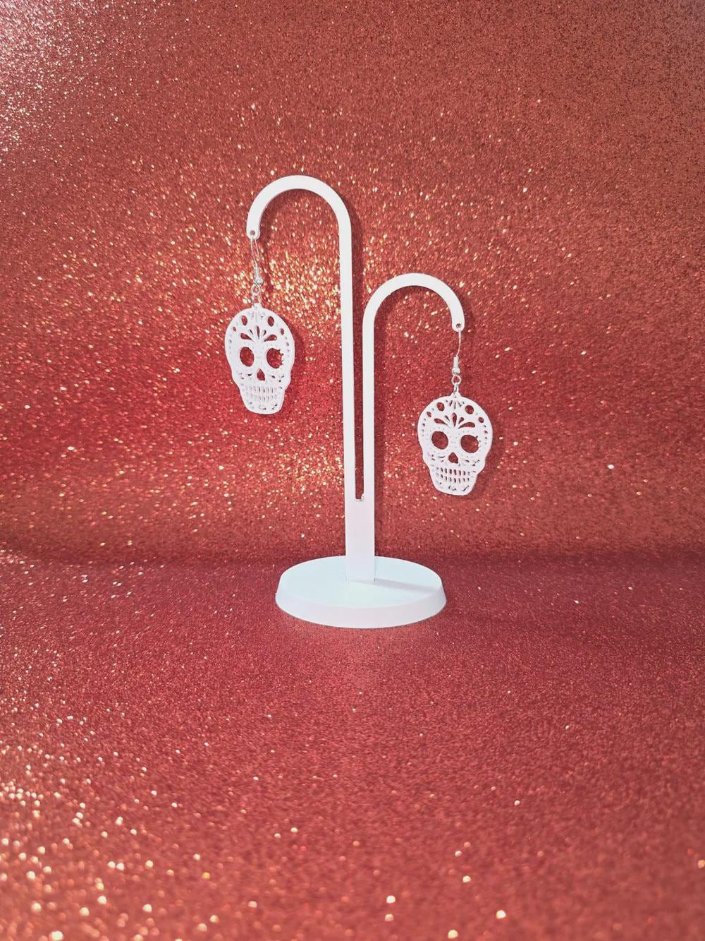 Celebrate DÃa de los Muertos in style with these stunning 3D printed Sugar Skull Earrings! 💀🌸 Designed with intricate cutout details inspired by traditional sugar skulls, these lightweight earrings are both festive and comfortable to wear. Perfect for Day of the Dead celebrations, Halloween parties, or adding a bold statement piece to your fall wardrobe, they capture the beauty and meaning of honoring loved ones while showcasing vibrant style.