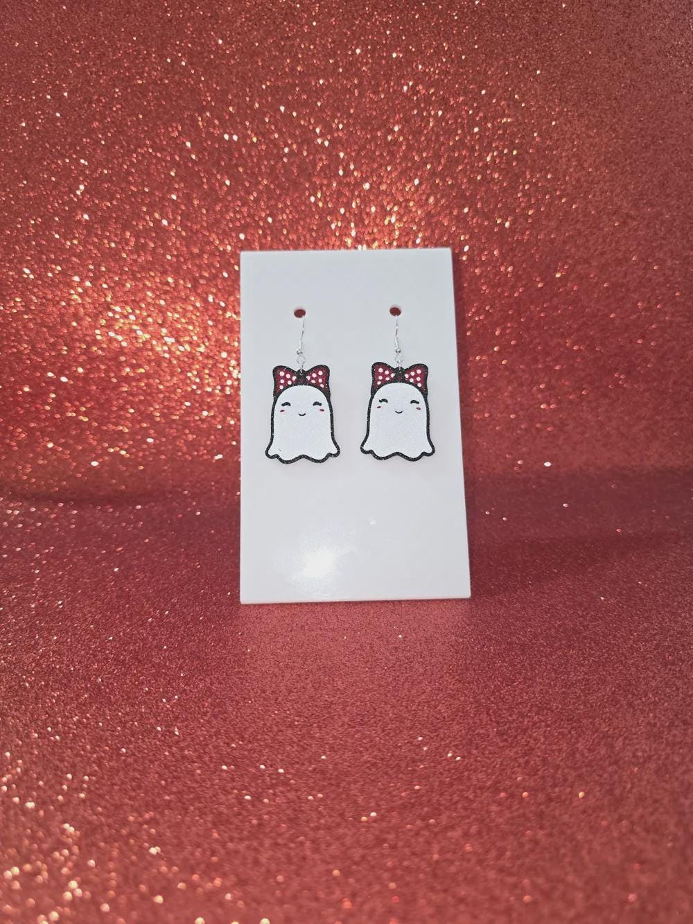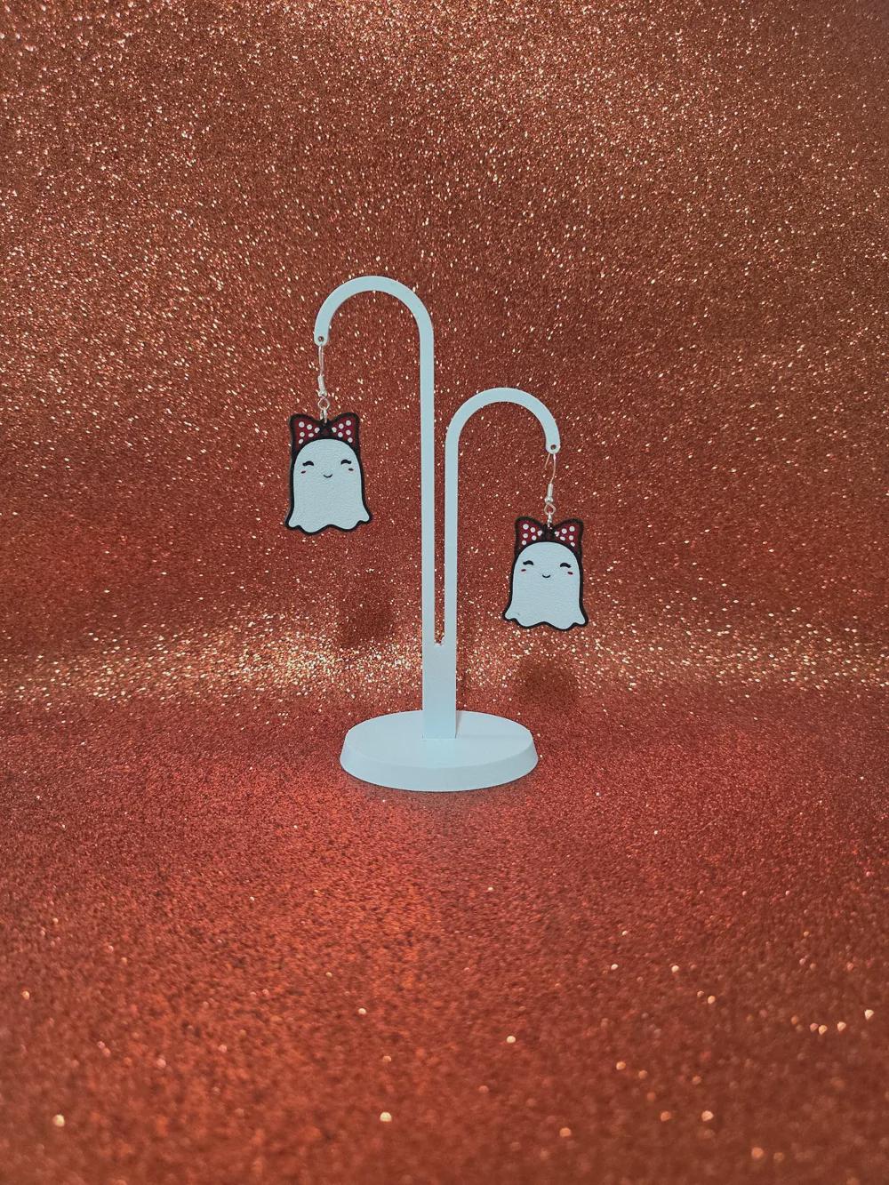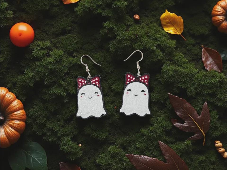 Boo-tiful and adorable! 👻🎀 These 3D printed Cute Ghost Earrings feature smiling ghosts topped with red polka-dot bows, making them the perfect mix of spooky and sweet. Lightweight and comfortable to wear, they’re ideal for Halloween parties, trick-or-treating, or adding a playful seasonal touch to your fall outfits. A must-have for anyone who loves “spooky but cute” style.
