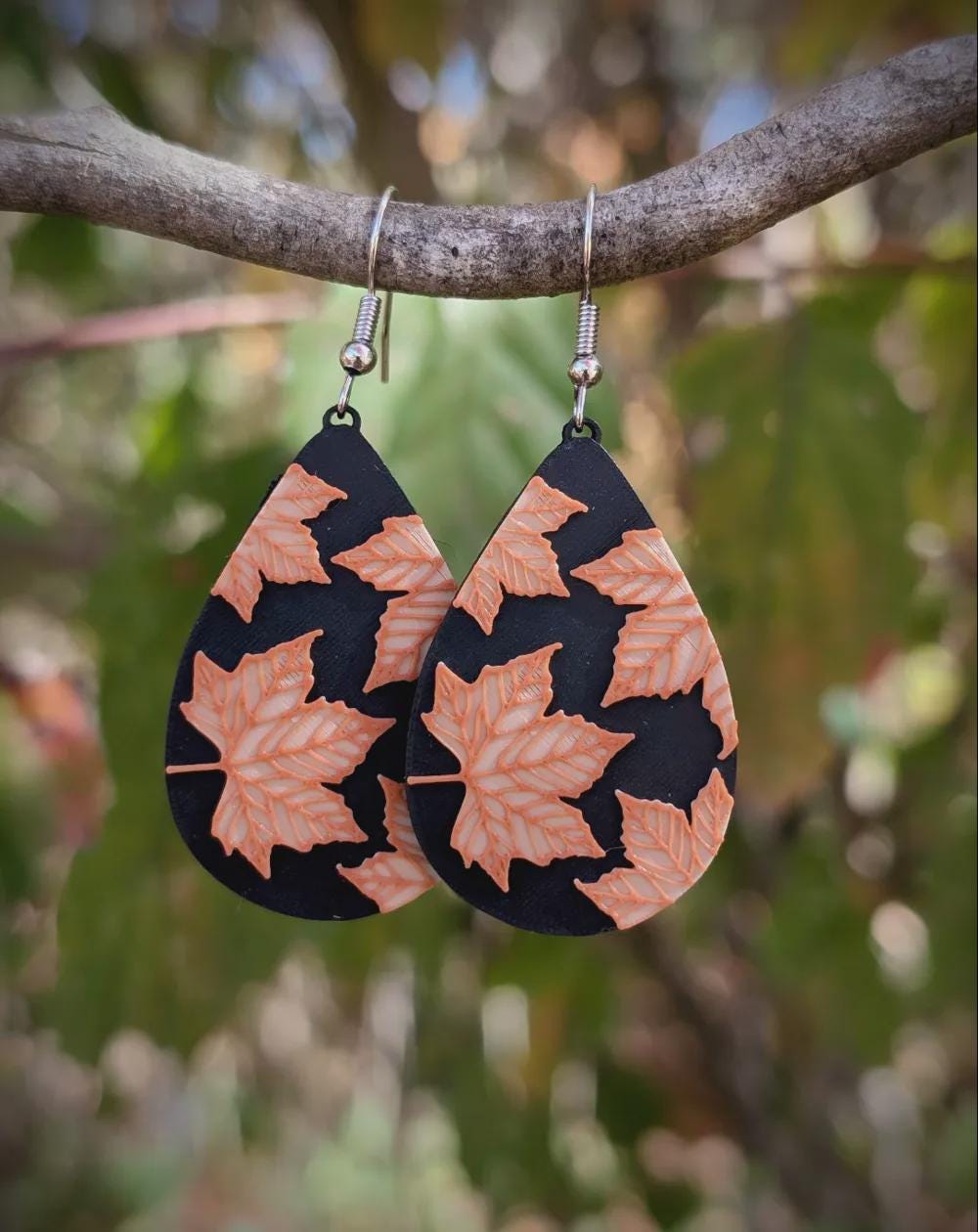 Celebrate the beauty of autumn with these stunning 3D printed Fall Leaf Earrings! 🍂 Featuring intricate orange leaves set against a bold black teardrop background, these earrings capture the cozy and colorful spirit of the season. Lightweight and comfortable to wear, they’re perfect for fall festivals, pumpkin patch outings, Thanksgiving gatherings, or simply adding a touch of autumn charm to your everyday style. A unique accessory that’s as stylish as it is seasonal!