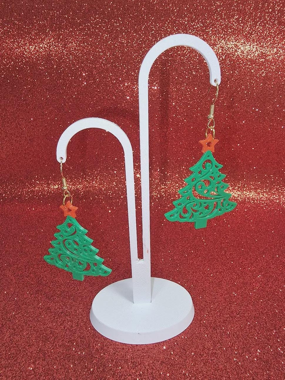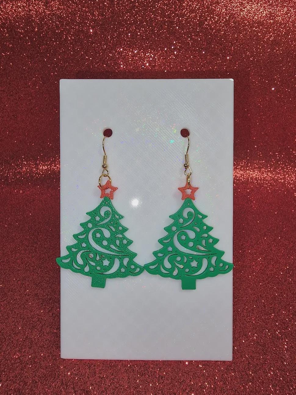 Get into the holiday spirit with these dazzling Christmas Tree Filigree Earrings! ππ Featuring intricate swirl cutouts and a charming red star topper, these 3D printed earrings shimmer beautifully under the lights of the season. Lightweight and comfortable, theyβre perfect for Christmas parties, holiday photos, or everyday festive flair.