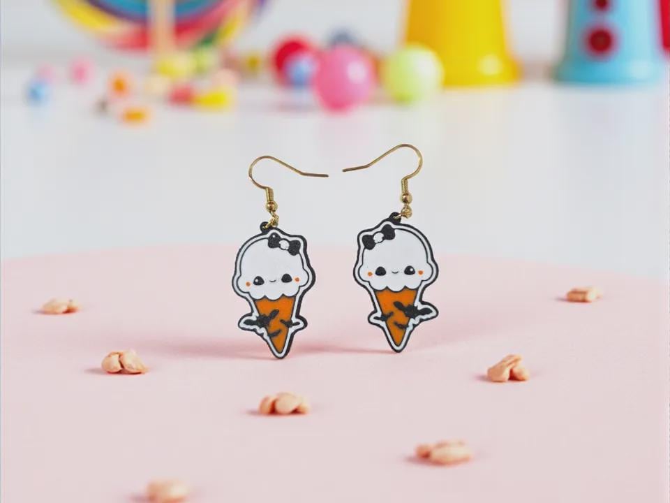 Sweet meets spooky with these Ghost Ice Cream Earrings! 👻🍨 Perfect for anyone who loves Halloween with a dash of cuteness, these 3D printed earrings feature an adorable ghostly scoop with a candy corn-colored cone.