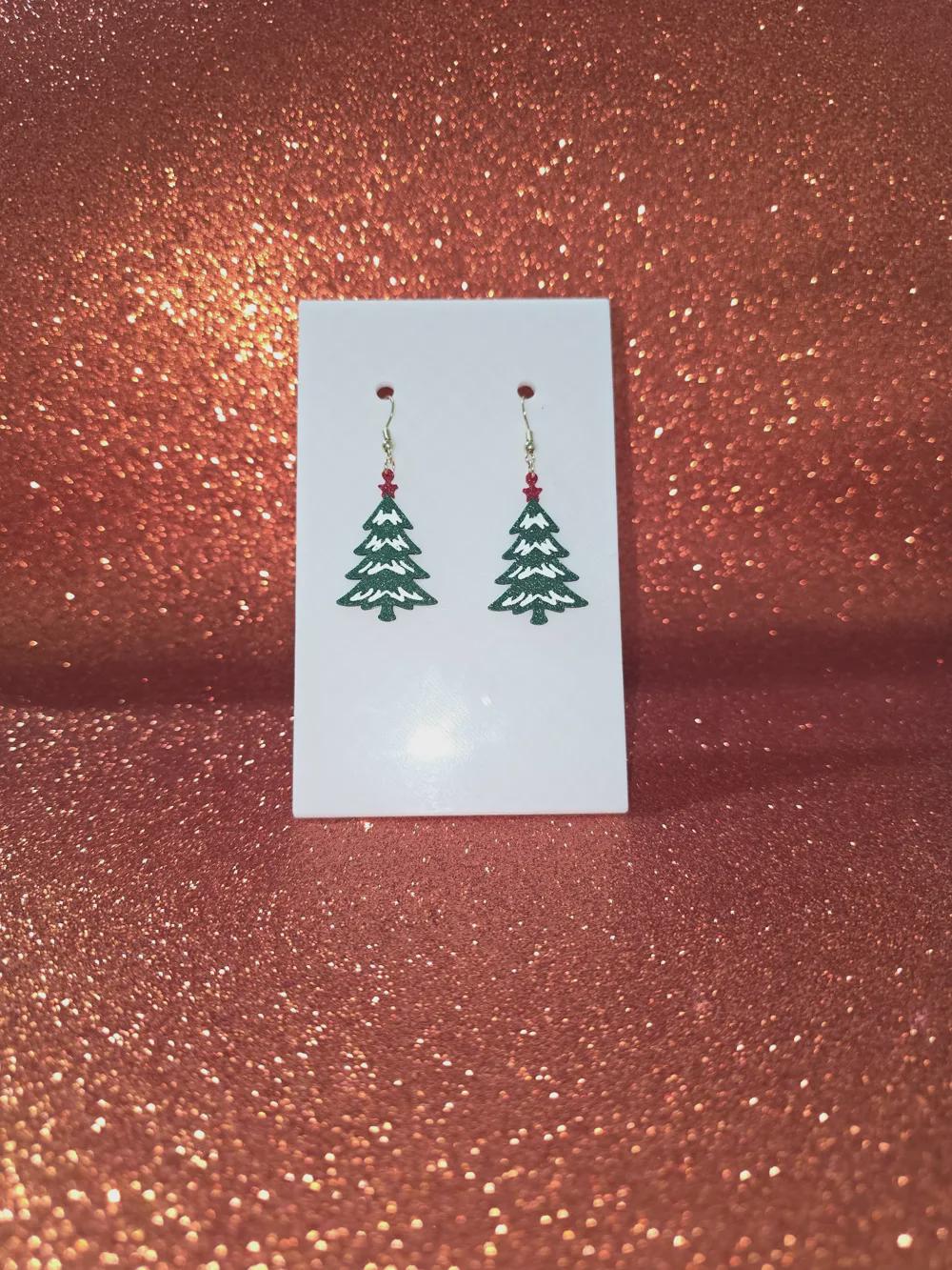 Each pair is 3D printed with care using lightweight, durable PLA filament and finished with a sparkling green glitter tree topped with a bright red star and white snow detail. Perfect for holiday parties, teacher gifts, or anyone who loves festive jewelry!