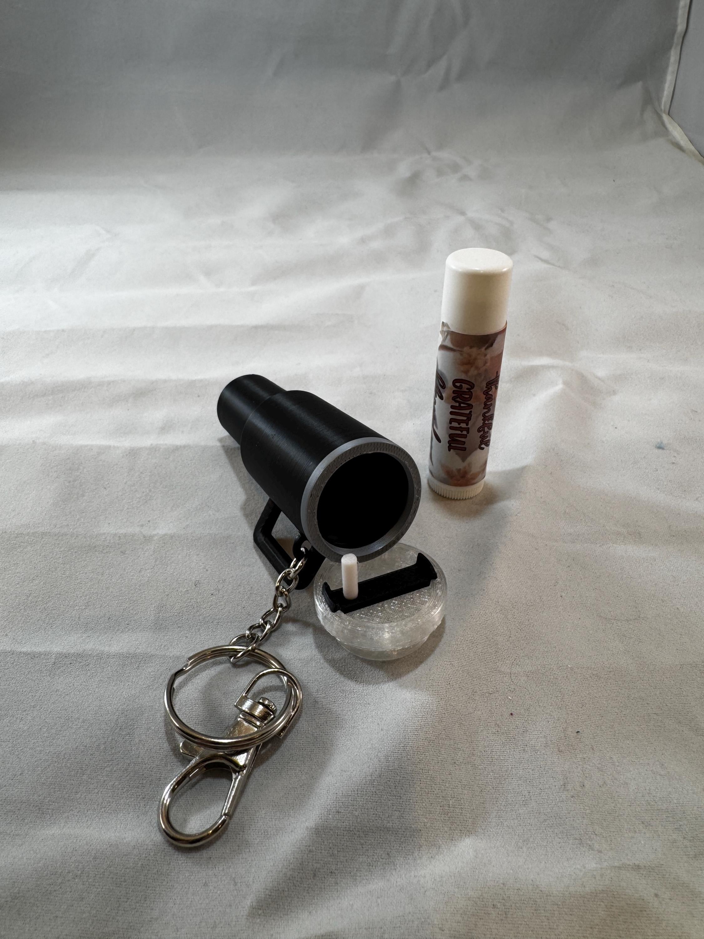 ✨ Details: • Fits standard lip balm tubes (ChapStick, Burt’s Bees, etc.) • Measures approx. 3.14" tall × 1.58" wide • Durable, lightweight PLA plastic • Includes keyring and lobster clasp for easy attachment • Choose from multiple colors: Pink, Navy Blue, Red, or Black