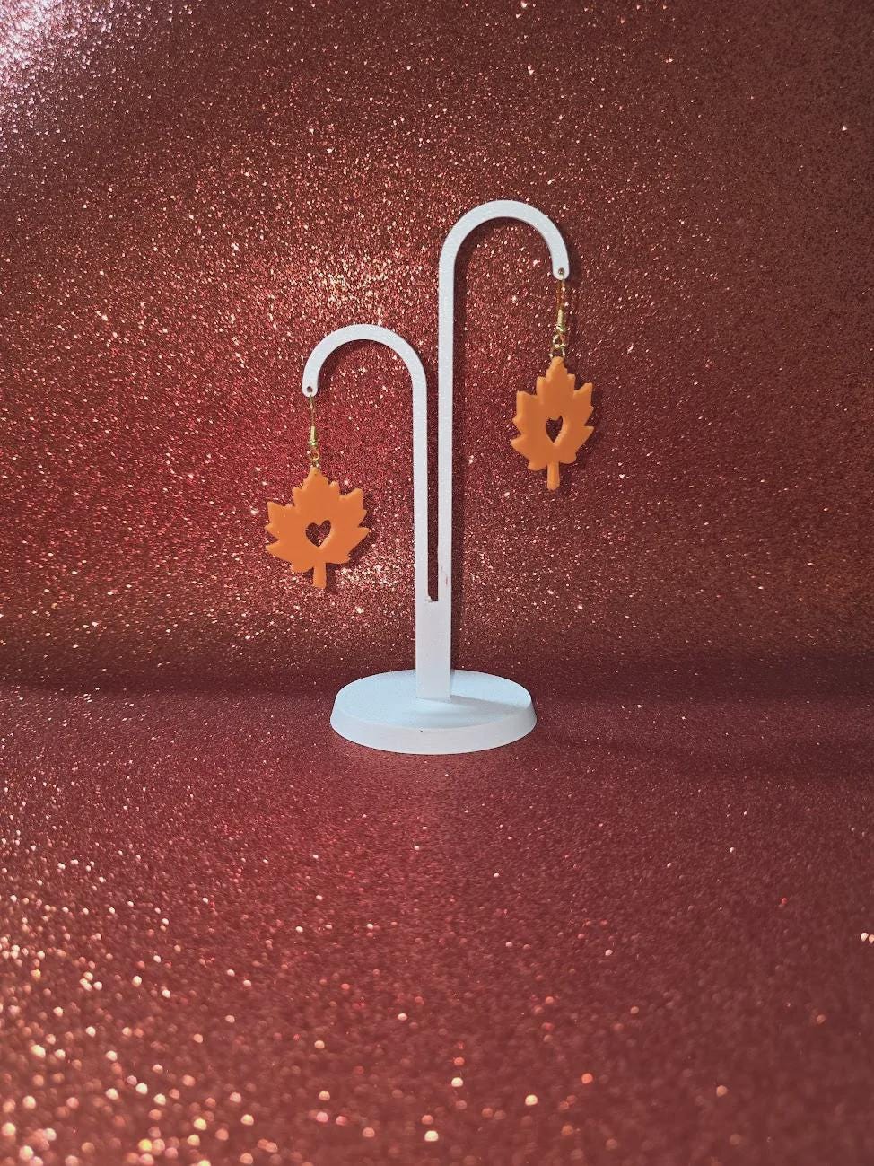 Bring the cozy magic of fall everywhere you go with these adorable Maple Leaf Heart Earrings. Designed with a charming heart-shaped cutout and a warm autumn orange finish, these lightweight dangles are perfect for pumpkin patch outings, fall festivals, Thanksgiving gatherings, or simply celebrating your love for the season.