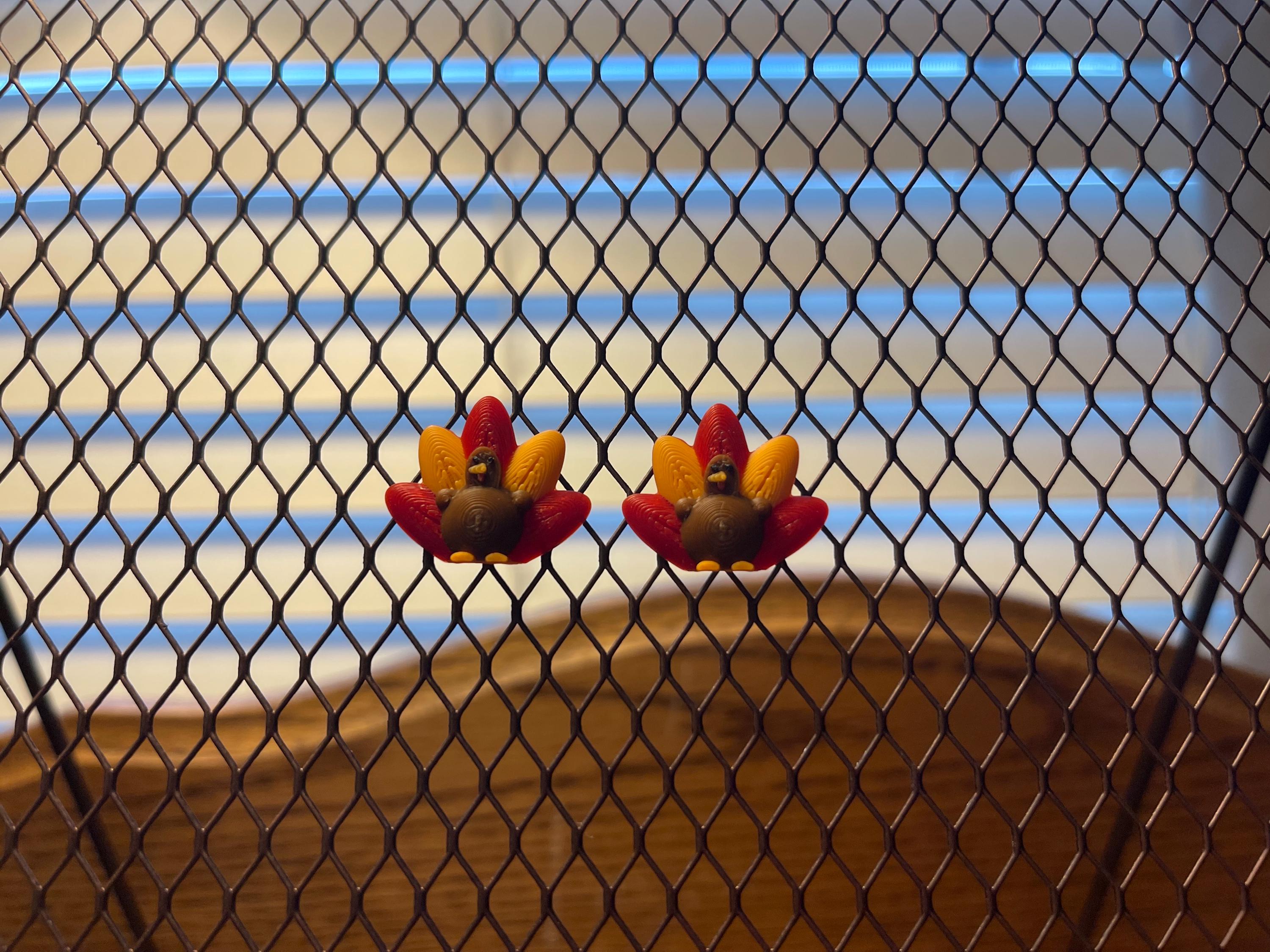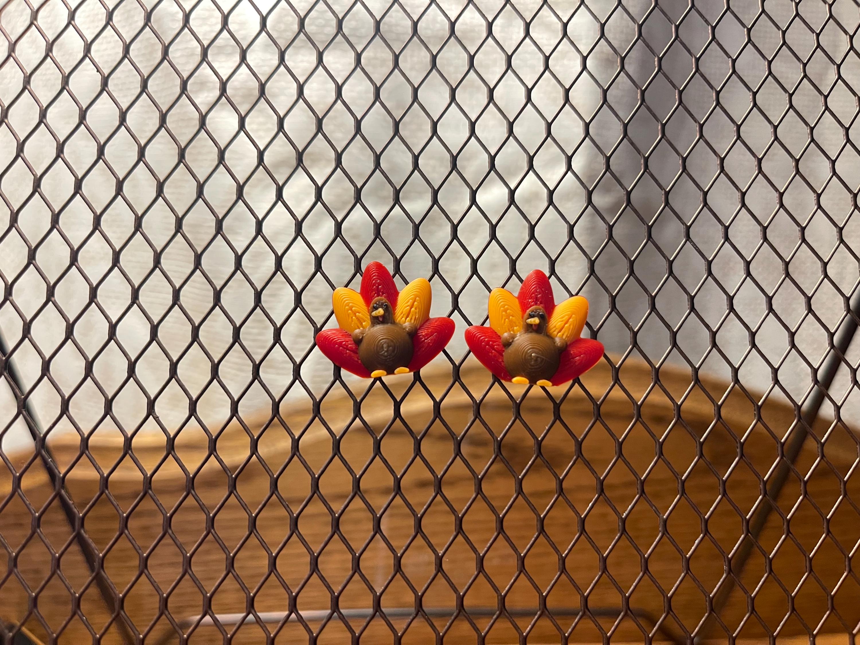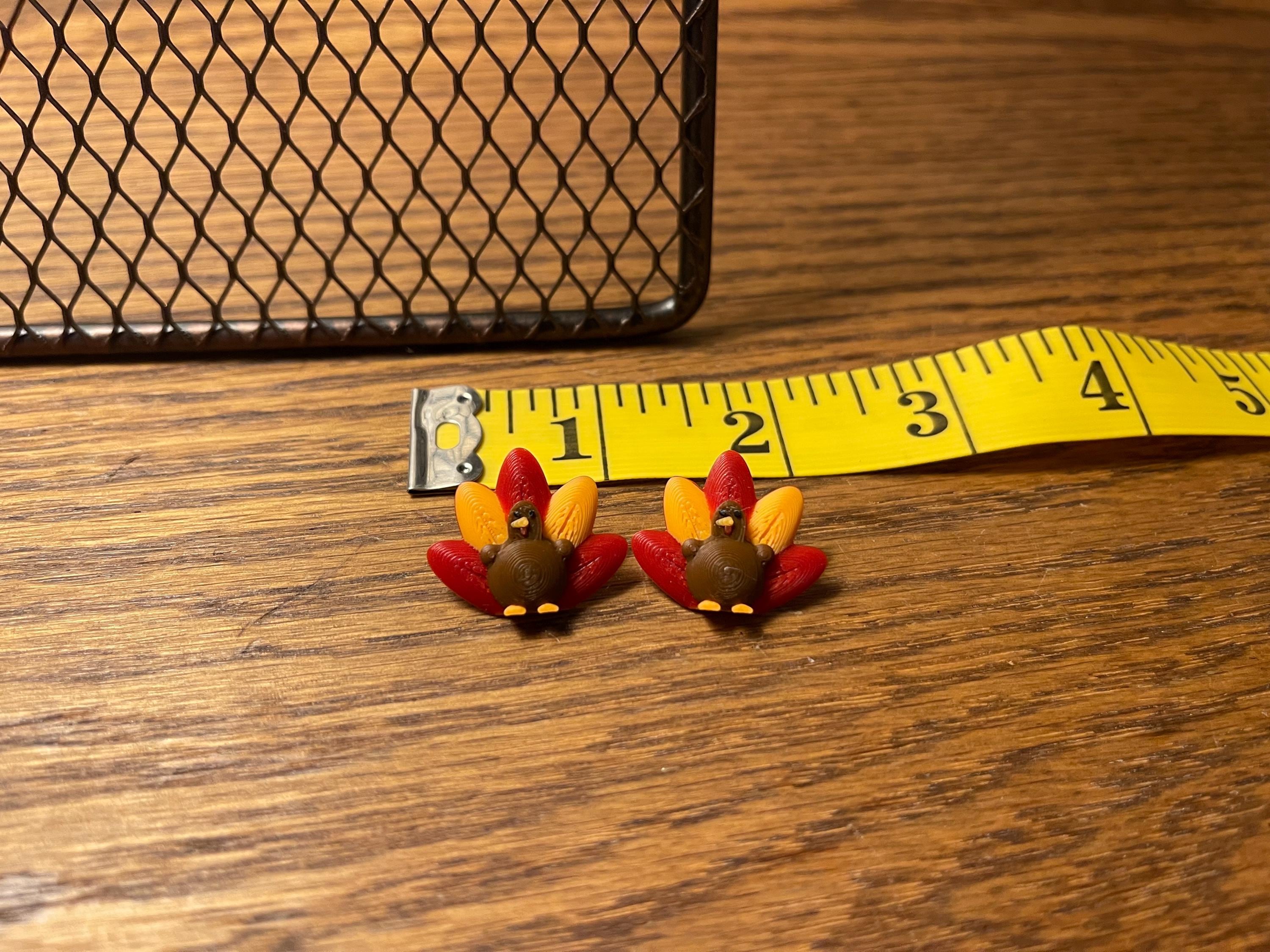 β¨ Details β’ 3D Printed Turkey Stud Earrings β’ Lightweight & comfortable β’ Hypoallergenic stud posts (silver-colored) β’ Approximately 1 inch wide (see photo for reference)