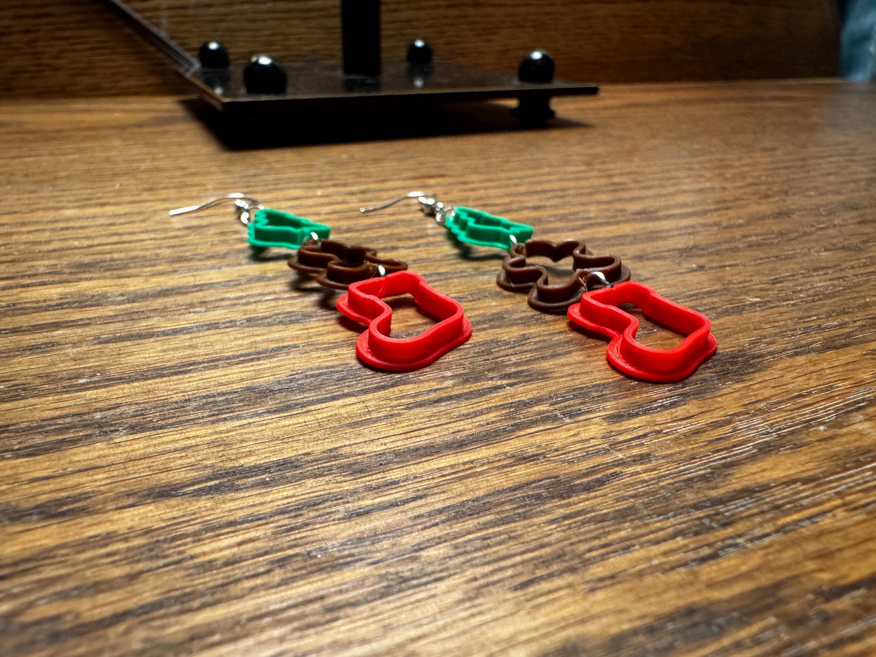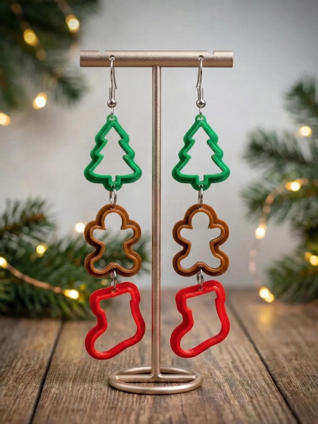 Each cookie-cutter charm is 3D printed in high-quality PLA and assembled with stainless steel hooks for comfortable wear.
