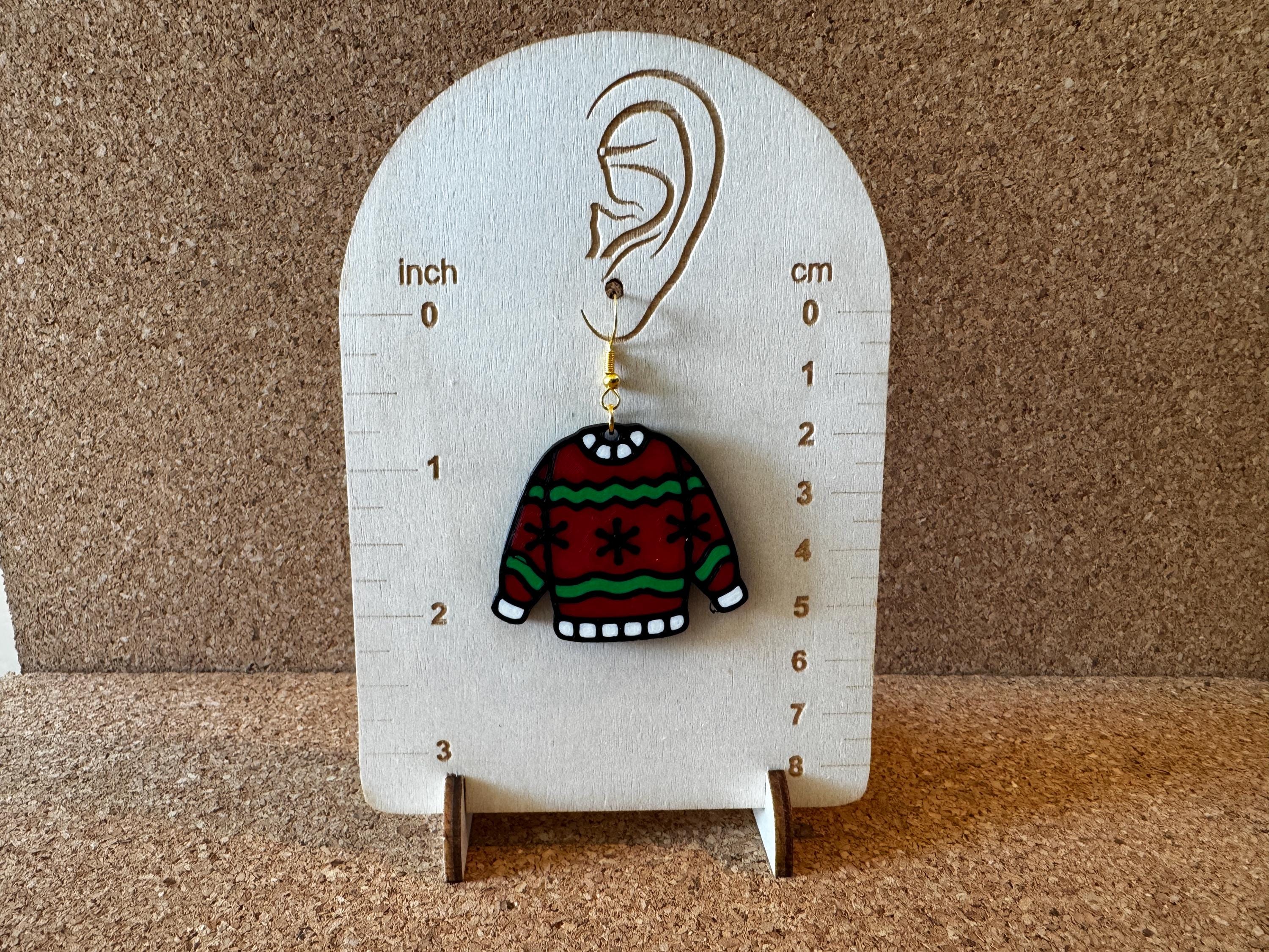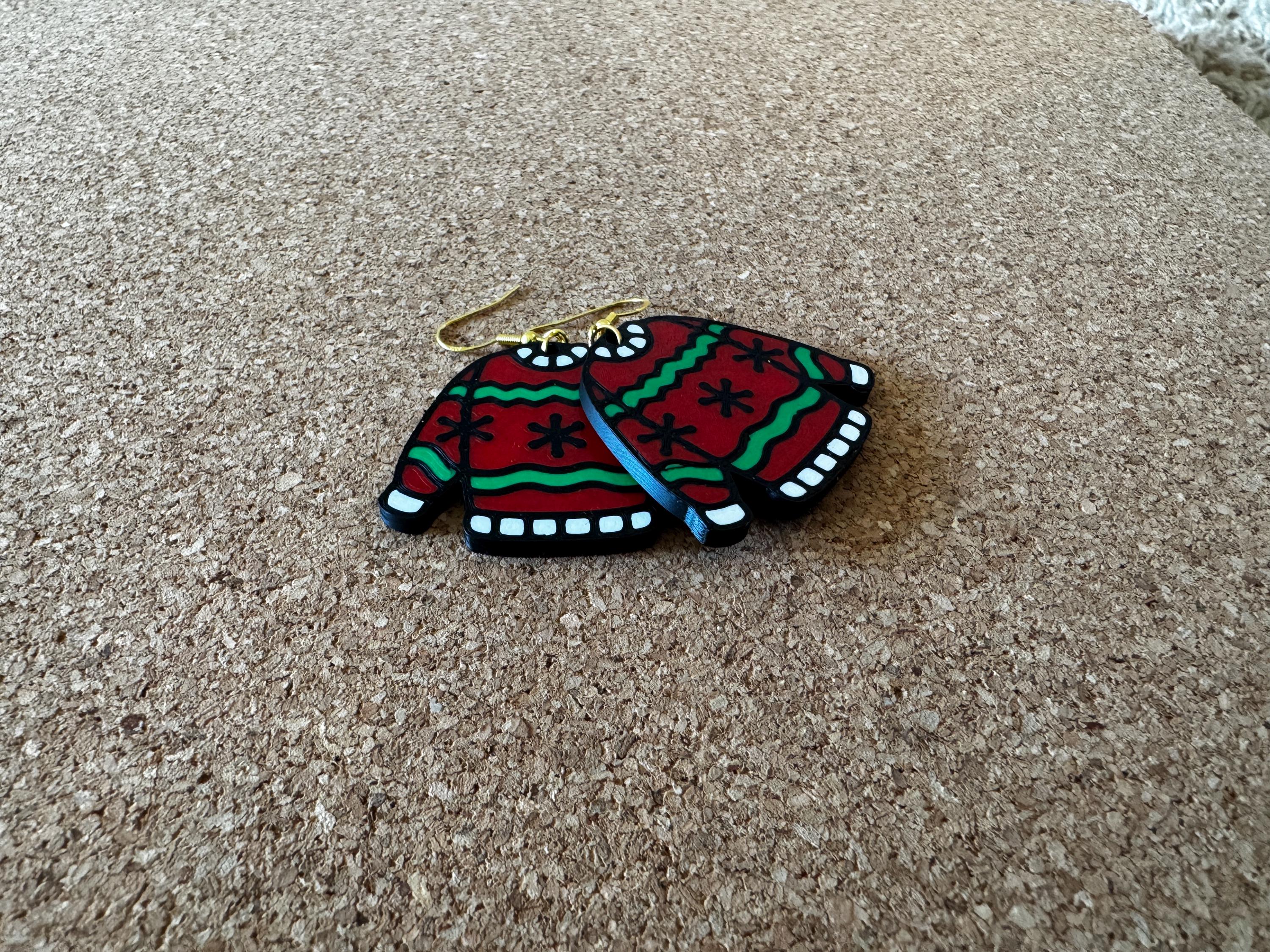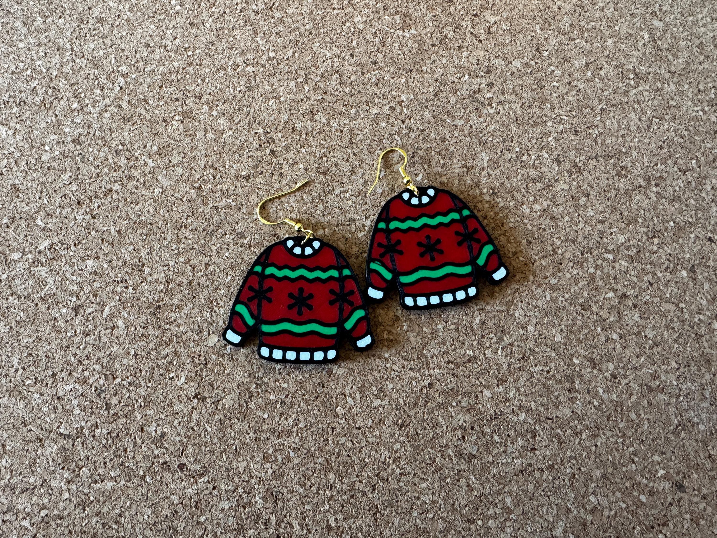 Each earring is 3D printed in high-quality PLA, resulting in a lightweight, comfortable design that won’t tug on your ears during long holiday events. The sweaters measure 1.5 inches tall x 1.6 inches wide, with your choice of silver or gold hooks for just the right finishing touch.