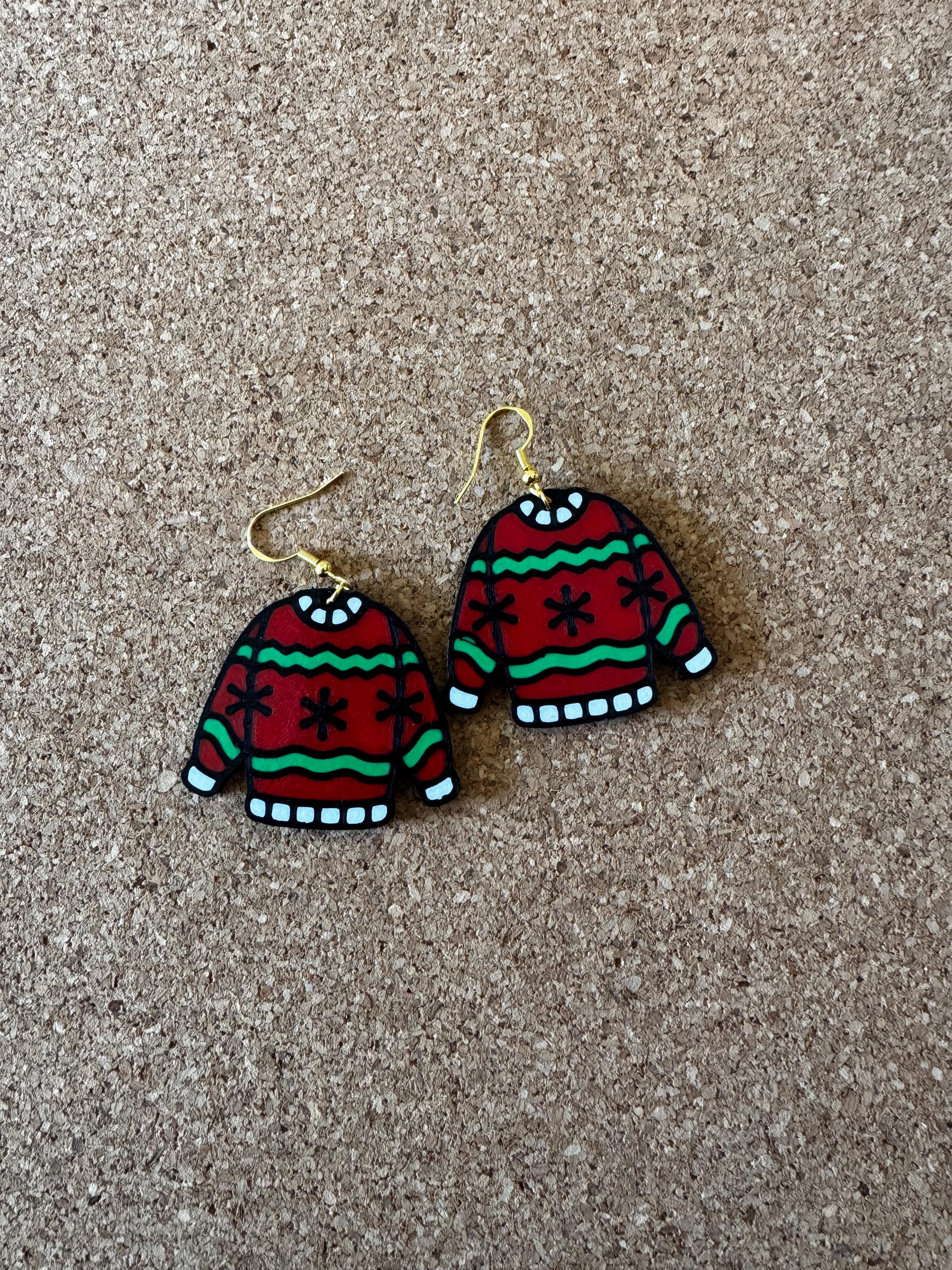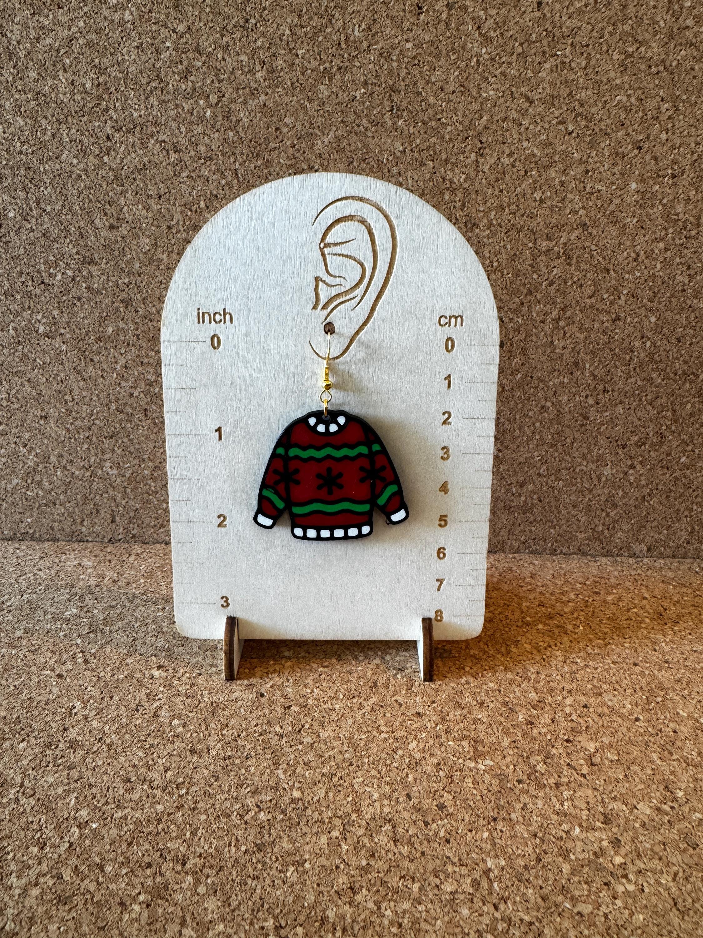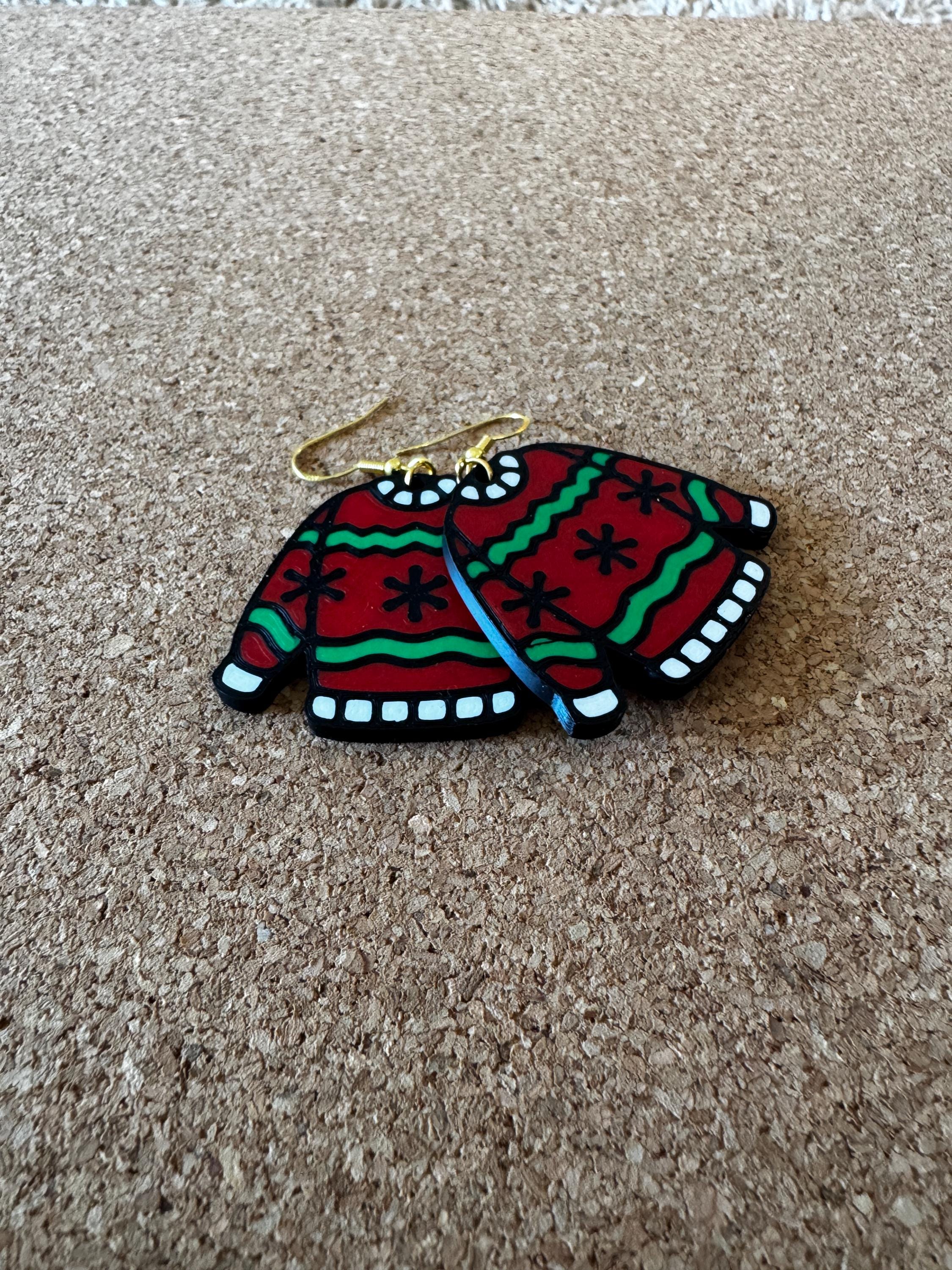 Bring cheerful holiday charm to your outfit with these adorable Christmas Sweater Earrings! These festive sweater-shaped dangles feature bold red, green, and black detailing — the perfect pop of color for Christmas parties, stocking stuffers, teacher gifts, or everyday seasonal style.
